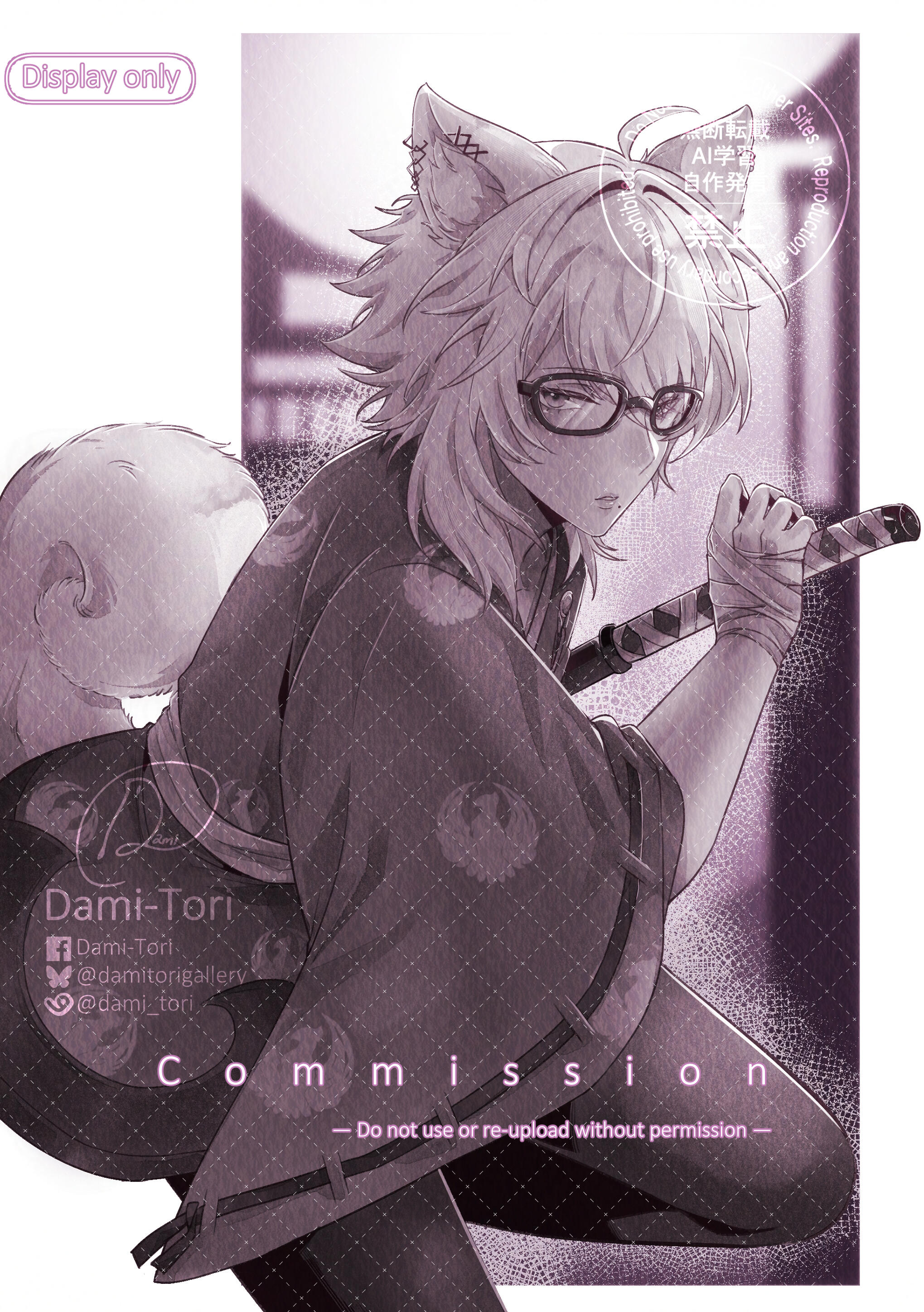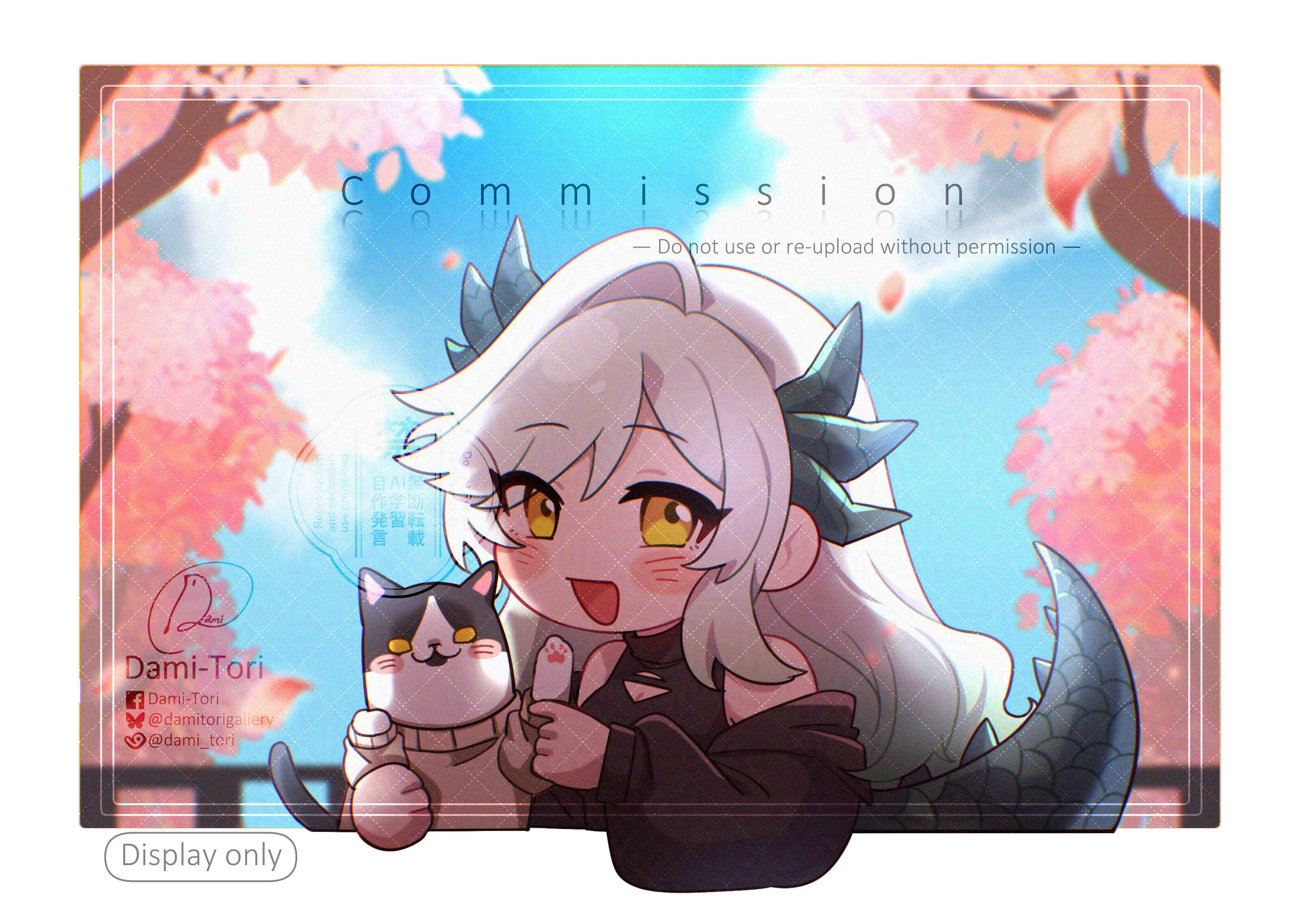 ไม่อนุญาตให้นำงานของเราไปใช้ใน NFTs, Opensea, AI และอื่นๆในเครือเดียวกัน ไม่ว่าจะเป็นงานในขั้นตอนใดก็ตาม หากมีการพบเจอ/พบเห็น หรือรับรู้ จะทำการ ปรับทันที 5,000.- พร้อมทั้งติด Blacklist ประกาศลงใน SNS ส่วนตัวของเราทันที