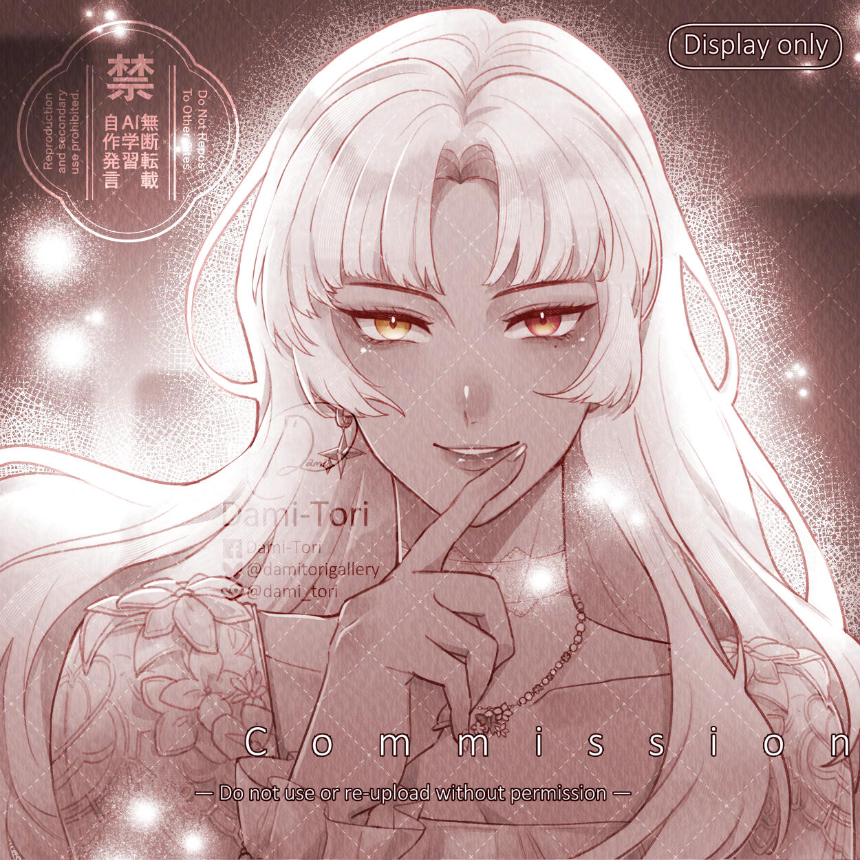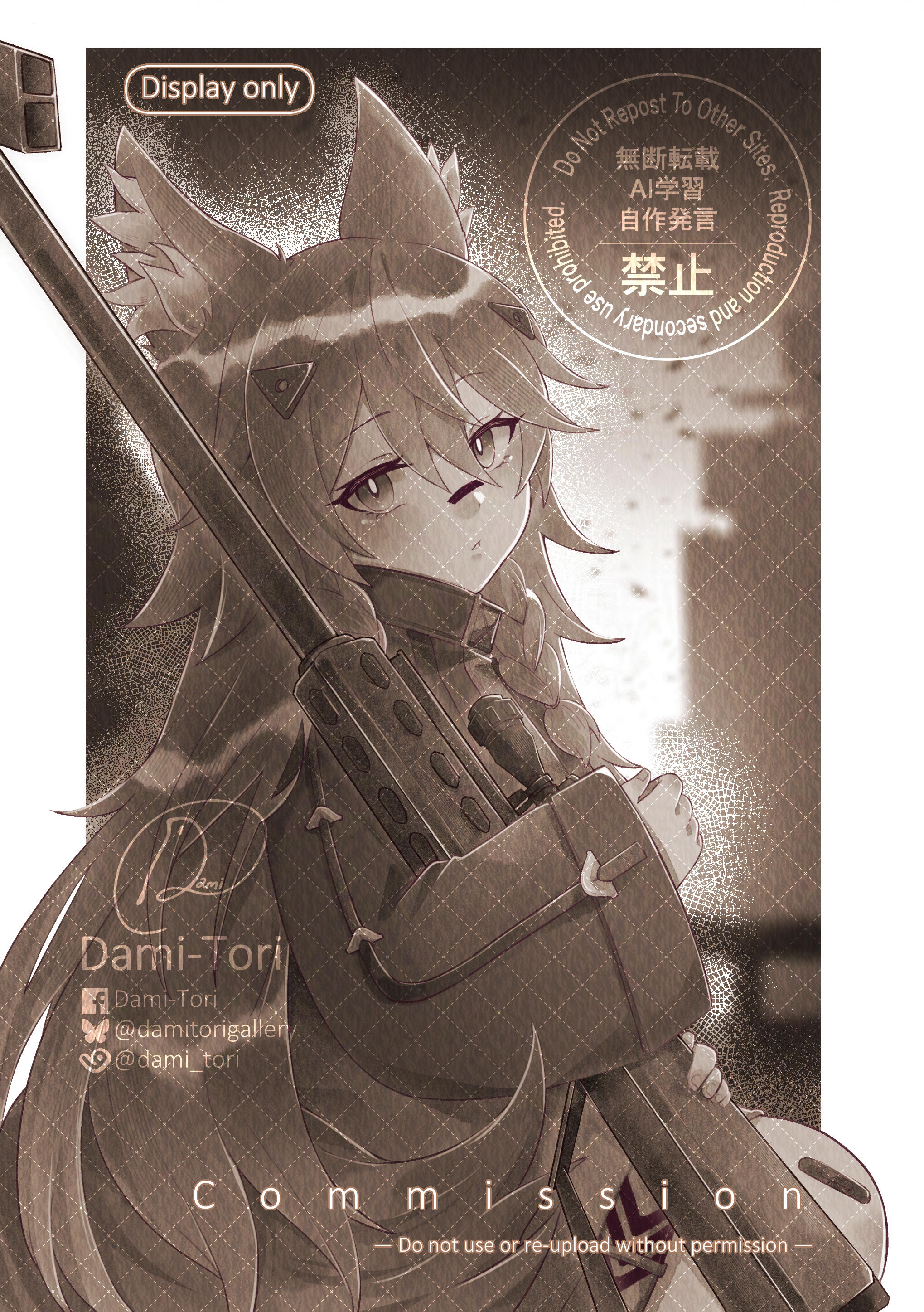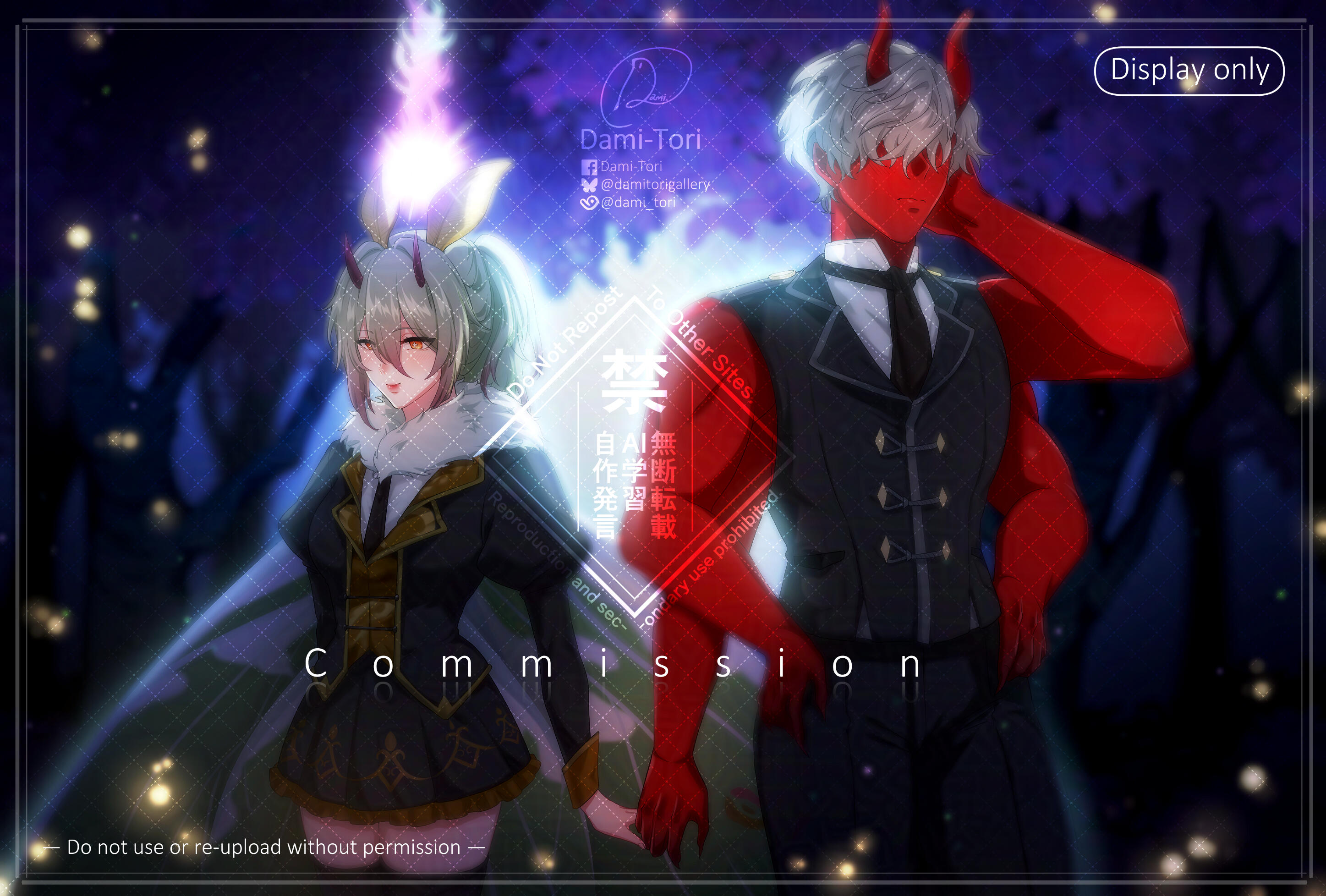 DO NOT use my commission for NFTs, Opensea or any AI related generator or other. No matter what process of the work, if found/seen or known, you have to pay for me 200 usd and you will be blacklisted.